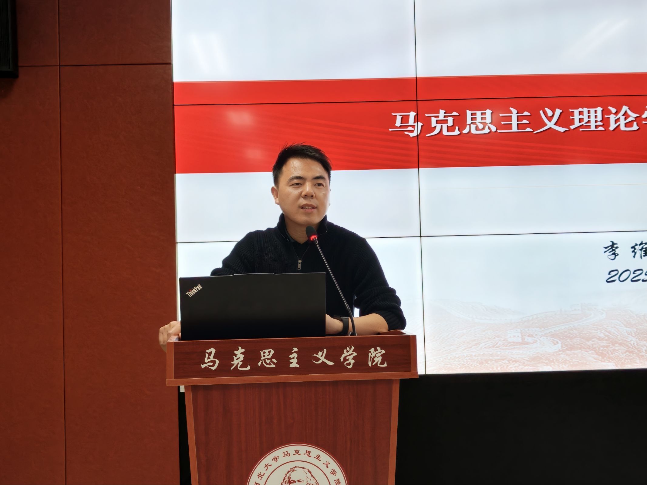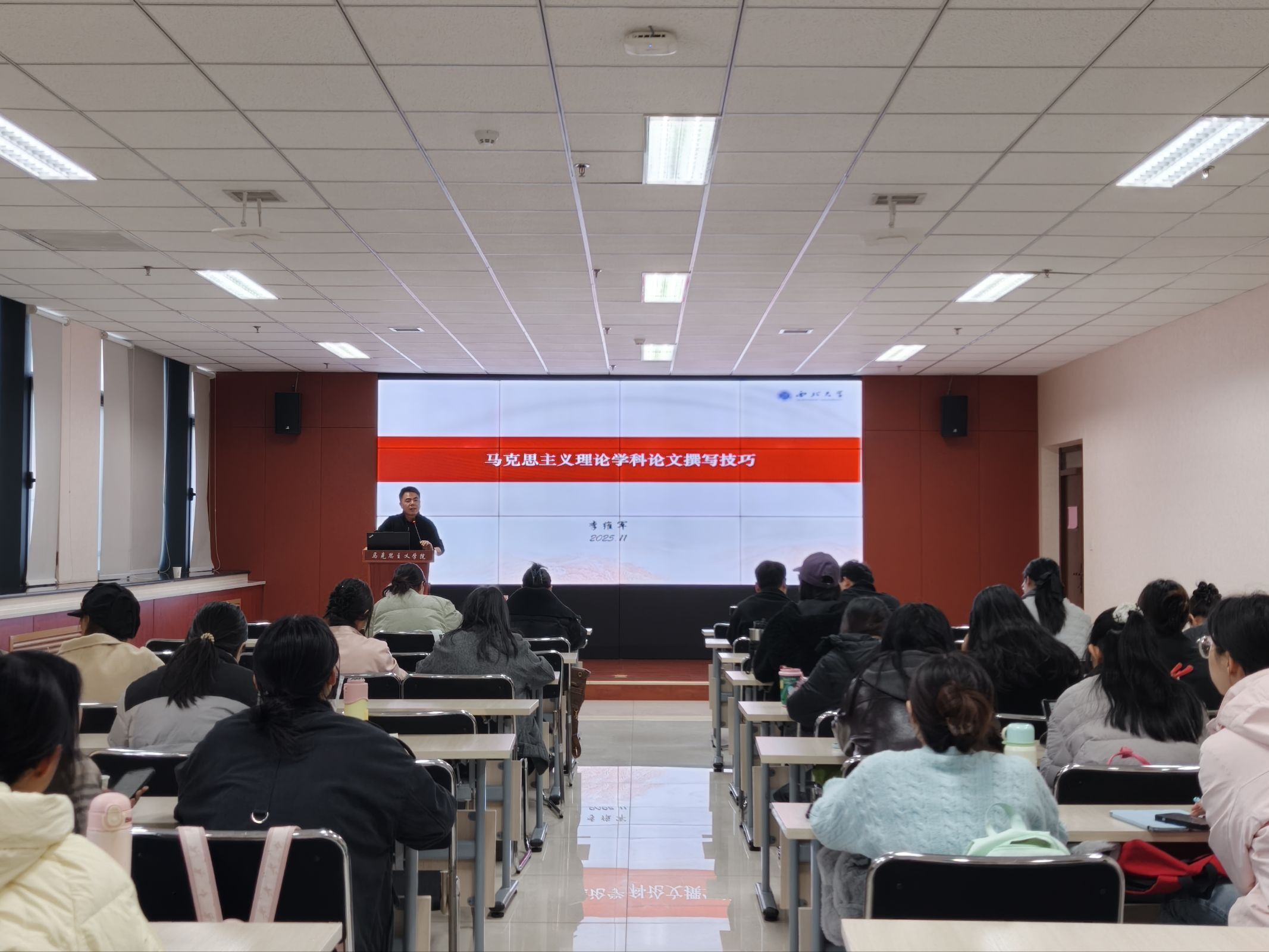 11月21日下午,学院研究生学术月系列活动之“导师讲坛”第215讲在学术报告厅举行。学院硕士生导师、青年教师李维军作了题为“马克思主义理论学科论文撰写技巧”的学术讲座,学院2025级全体博硕士研究生参加。
