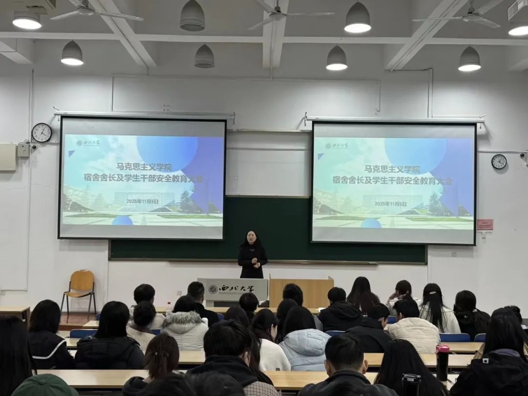会上,刘娟重点围绕宿舍关系维护与宿舍安全管理两大核心内容进行具阐述。她谈到,宿舍舍长需密切关注舍友相处动态及心理状况,当发现室友之间出现矛盾纠纷,或有同学呈现情绪低落、焦躁易怒、作息紊乱等异常状态时,务必第一时间向学院上报,防止因信息滞后导致矛盾升级或心理问题加重。另一方面,她强调,宿舍舍长要带头树立安全意识,持续提醒同学们重视用电安全,规范使用电器、杜绝违规用电行为,同时要做好财产安全防范,引导大家妥善保管贵重物品,共同筑牢宿舍安全屏障。
