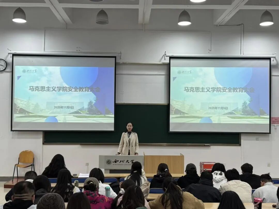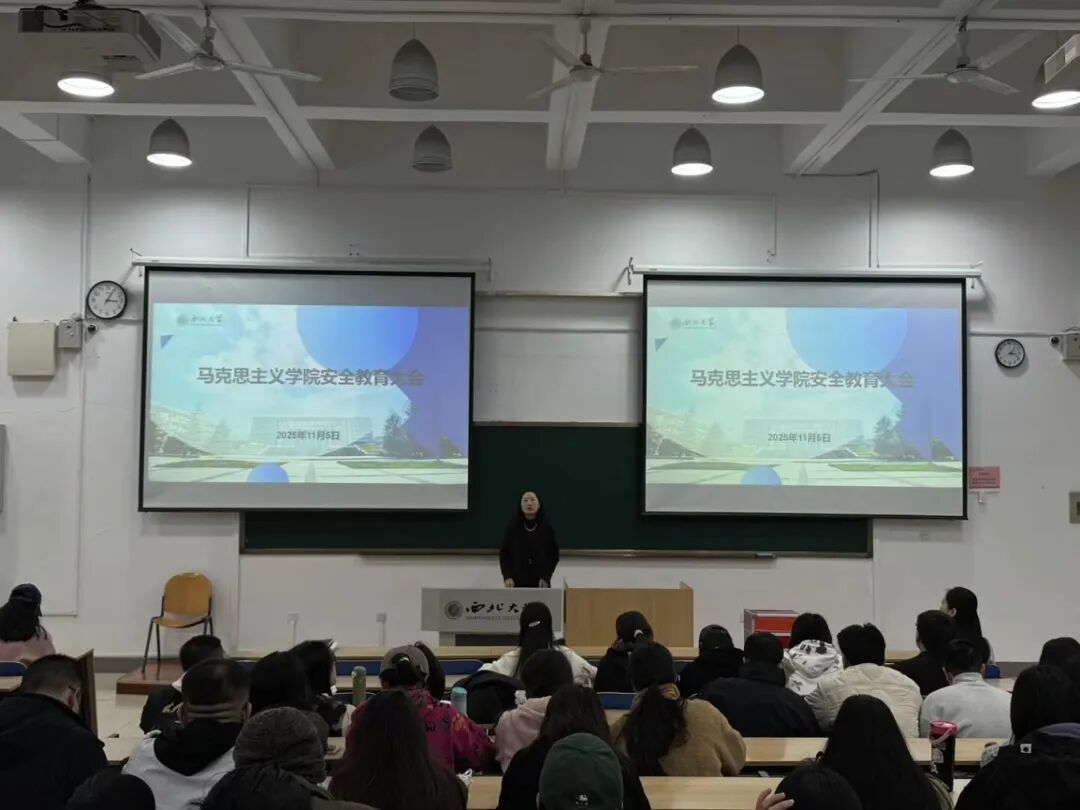 11月5日下午,我院召开安全教育大会。会议由我院辅导员刘娟主持,我院党委副书记邵平及全体学生参会。