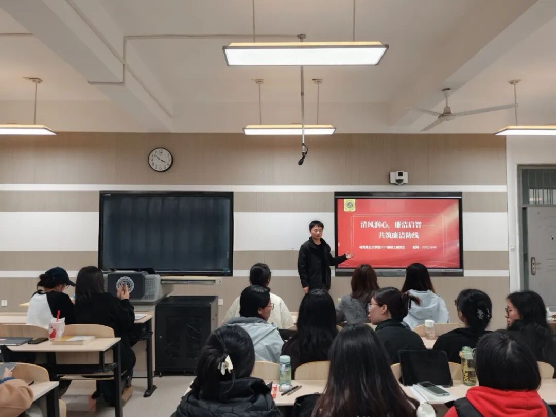 11月7日下午,我院组织召开“清风润心·廉洁启智”主题班会。本次班会由2025级硕士生班长万超主持,2025级全体学生参加。