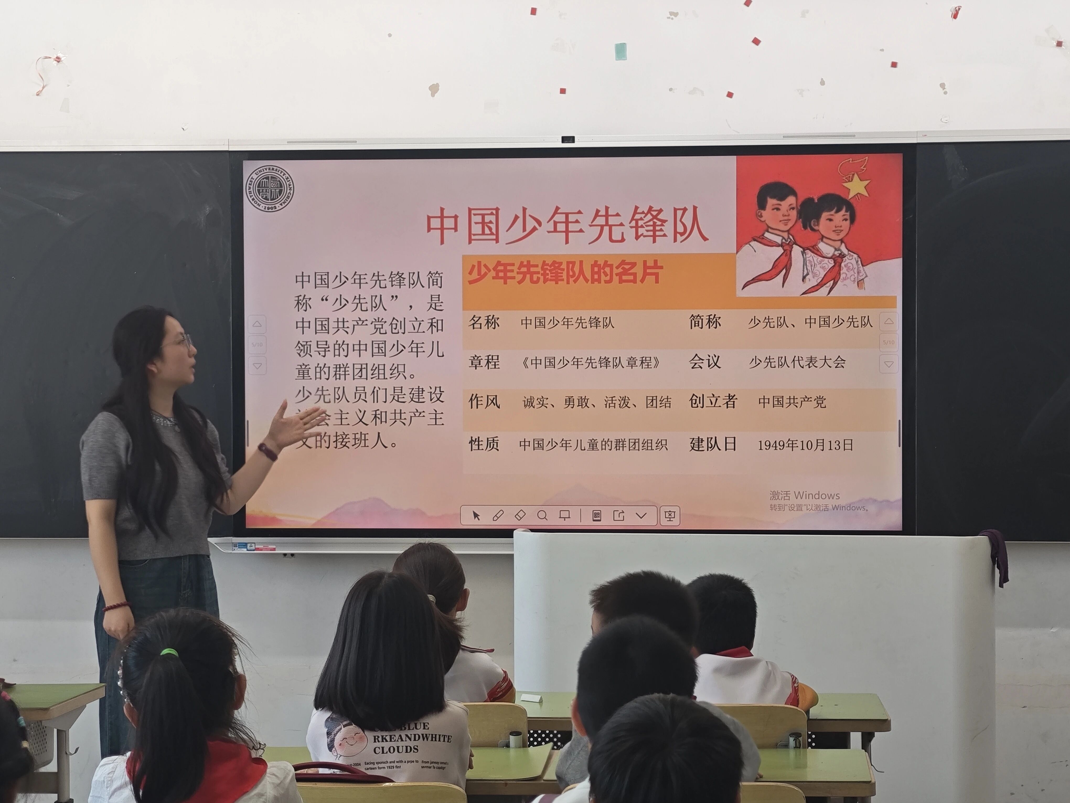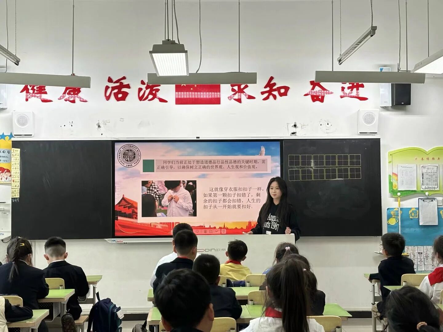 巨亚萍以《光荣的少先队》为题,带领同学们重温了中国少年先锋队入队誓词,激励同学们听党话、跟党走,让胸前的红领巾更鲜艳。