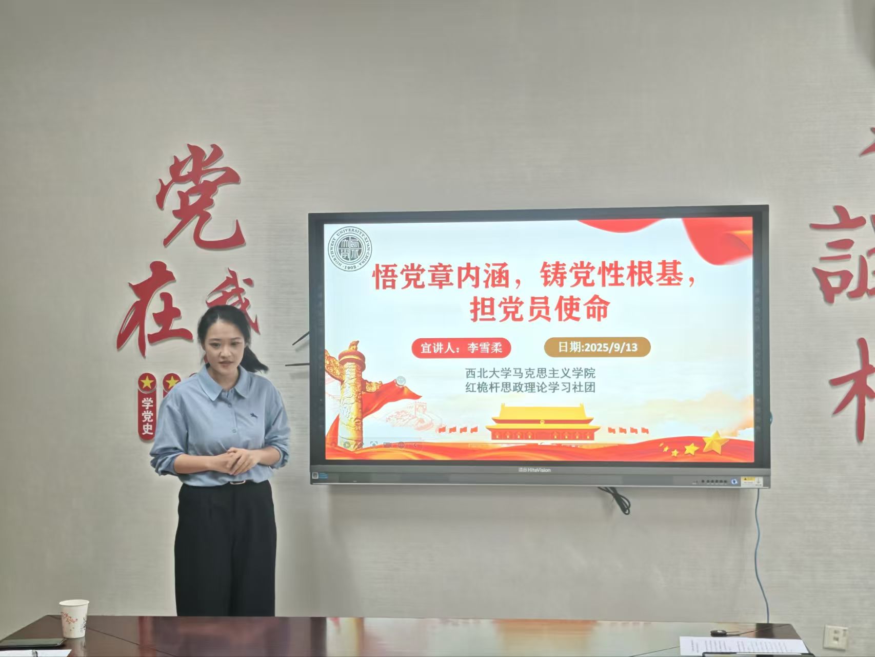 李雪柔以《悟党章内涵,铸党性根基,担党员使命》为题,讲解了党章的结构、地位和作用,倡导大家要做新时代的合格党员,以实际行动践行初心使命。