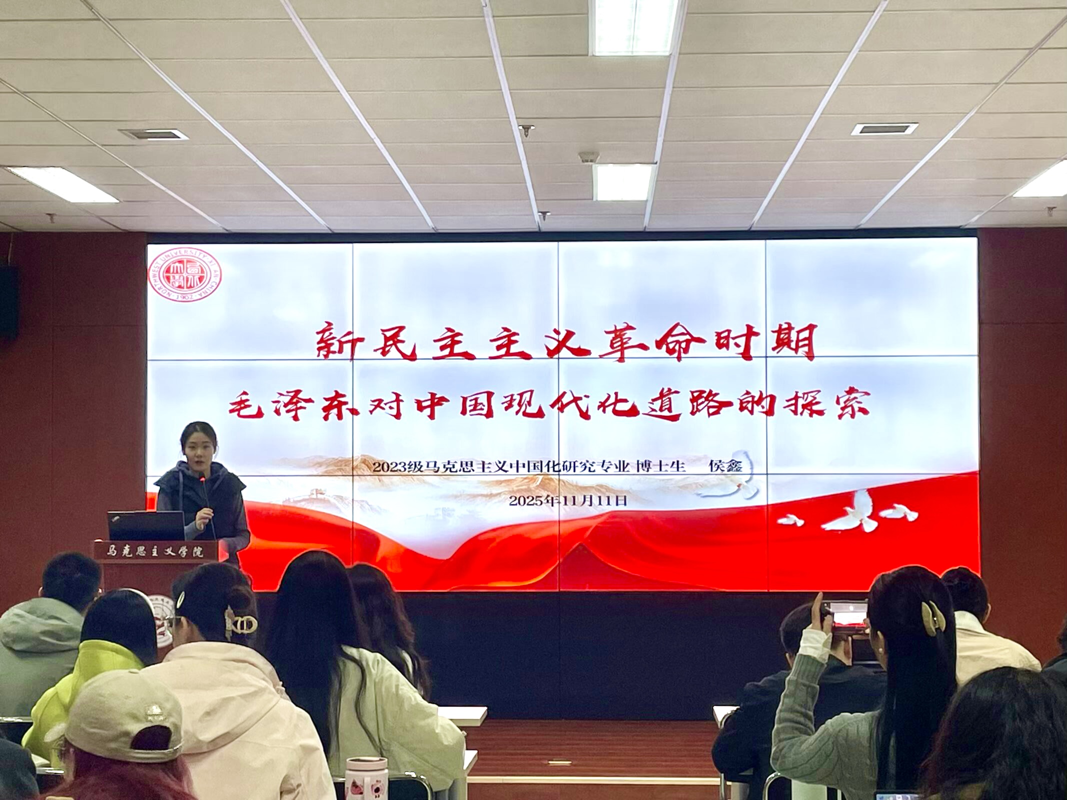 会上,侯鑫、许乐、张明琴、尹伶伊、李昱颖、李林桂、许志国、吕向丽、李浩分别作了题为《新民主主义革命时期毛泽东对中国现代化道路的探索》《抵御与动员:抗战时期妇女参政的国共比较》《马克思的导师·密友·论敌:布鲁诺·鲍威尔的思想发展探究(1834-1844)》《中国共产党领导教育现代化的三重逻辑》《毛泽东出任国民党中宣部代理部长期间关于中国革命若干问题的理论思考》《中国共产党历史主动精神的道路启蒙、内涵探赜与当代指向》《“多党合作制”在近代百年中国的生成机理探究》《新质生产力赋能共同富裕的“路基”“路障”及路径》《数字生态文明建设的价值意蕴和推进路径》的学术报告。