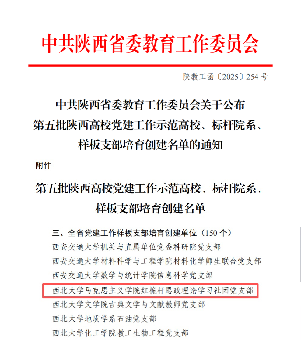 近日,陕西省委教育工委公布第五批高校党建工作示范创建名单。我院红桅杆思政理论学习社团党支部(以下简称“红桅杆党支部”)入选样板支部培育创建名单,学院党建“双创”工作再上新台阶。