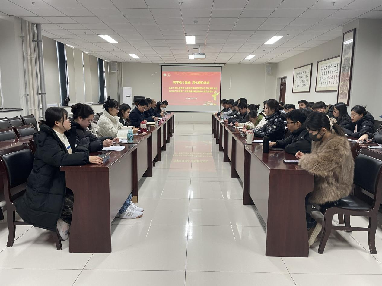 12月23日上午,我院红桅杆思政理论学习社团党支部召开主题为“筑牢战斗堡垒 深化理论武装”的2025年下半年第二次党员基本培训集中大课交流研讨会,党支部全体党员参加,会议由党支部书记李旺盛主持。省委教育工委和学校党委组织部派员列席参加。