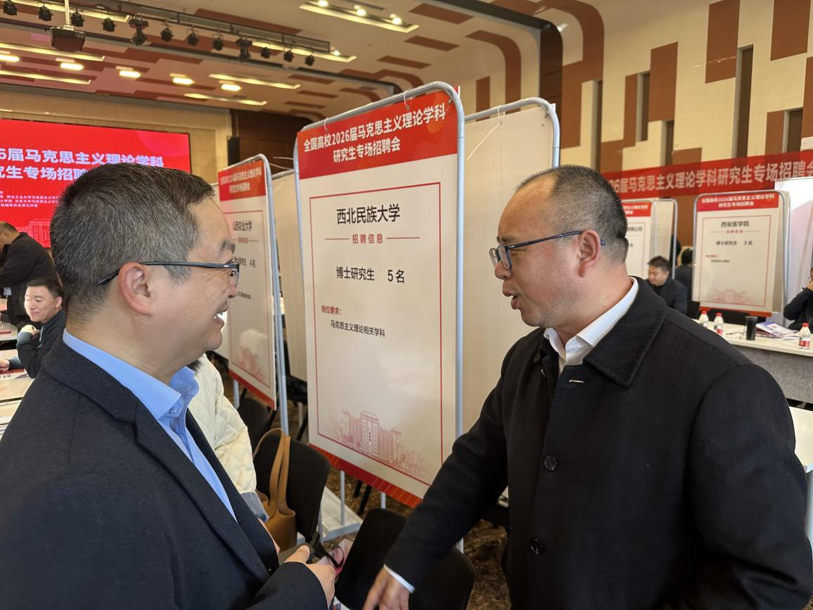 3月21日,我院党委书记韩凯峰、院长何博、副书记邵平、副院长袁成一行赴全国高校2026届马克思主义理论学科研究生专场招聘会现场开展访企拓岗。